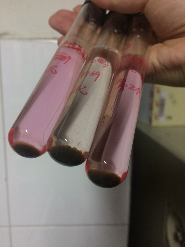 各位朋友们 帮忙看一下硫酸盐还原菌到底长出来了没有?这是第二代第四天了。有一个培养基完全变黑了是什么情况??厌氧管里的一直很澄清 只是底部有黑色沉淀产生,是因为菌长得很少吗?厌氧管最左边一支是没有接种菌液的培养基 用来做对比的 里面的沉淀还是黄绿色的 没有变黑。求各位大神指教,感谢! 发自小木虫IOS客户端 |