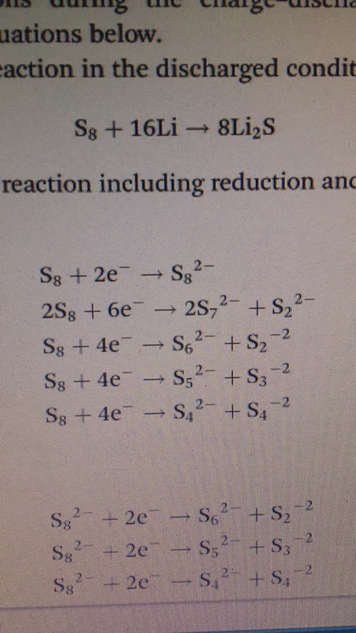 今天看一篇文献,写锂硫电池正极反应的,结果我发现他的聚硫离子的角标既有-2也有2-,而且看起来也不像写错了,因为有S4 2-与S4 -2(式2的最后一个)。 特地求大神解释一下这个有啥说法 文章是nanoscale的,标题为“a review of recent developments in rechargeable lithium-sulfur batteries " 发自小木虫IOS客户端 |