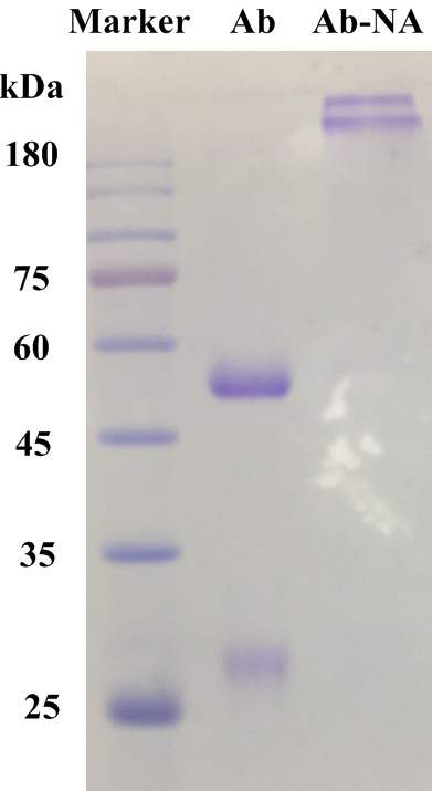 抗体与SMCC反应的时候还没有加核酸,所以应该不是抗体和核酸的比例问题吧。我想过稀释抗体,但是抗体与SMCC反应之后我是用一个最大上样量12微升的脱盐柱除过量SMCC的,如果稀释太多实验的成本上耗不起啊 另外我想问一下,你知道为什么如果SMCC先和氨基的DNA反应,除盐之后再与抗体孵育,理论上不是也可以吗,为什么我的电泳显示一点也没有标上去?如果SMCC能让这个抗体产生这么严重的交联,它表面的巯基应该挺多的吧? 发自小木虫IOS客户端 |