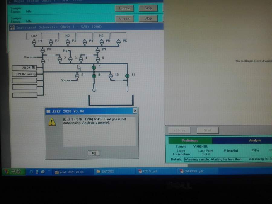ASAP2020测试二氧化碳微孔时出现Psat gas is not condensing,Leak test failed,请问该怎么解决? 测氮气吸附没问题 IMG_20171003_154958.jpg IMG_20171003_133243.jpg |