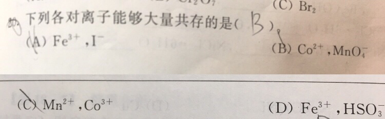 请问B答案为什么不会发生氧化还原反应呢?mno4-强氧化性吧co2-还原 还有C答案需要考虑在酸性条件还是碱性条件吗? 发自小木虫IOS客户端 |