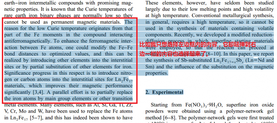 有些分栏的pdf文档进行文本选择时为何不能选择同一栏内容?