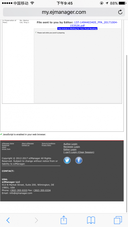 文章接收之后收到一封信,但是作者主页没有proof,只有一个pdf"' 下面是信的内容 is almost ready for publication at Emirates Journal of Food and Agriculture. But before publication your final check will be highly appreciated. For this reason, the galley proof of your accepted article was uploaded to your author homepage. Please log in, download the proof and check/read it carefully for any mistake or typographical error(s); then submit your corrections (if exist) latest with the following 72 hours. Please note that if you not respond to this message or do not submit any possible correction within the deadline we will reserve your article for online publication as its is. Please also consider that no changes can be made in your article after this step. 我搞不懂如果我要是不管的话会publish吗? 发自小木虫IOS客户端 |
