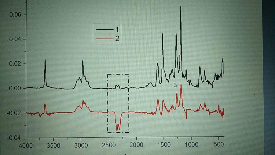 在作图的时候发现二氧化碳的位置吸光度为负值,出现这一情况是什么原因,两个样品,一个为正,一个出现了负值,求解答 发自小木虫Android客户端 |
