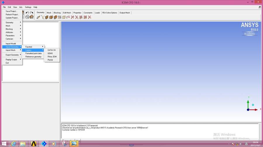 大家好,本人刚开始接触ANSYS CFD软件,目前单位购买的是研究版的,版本是18.0,计算机系统为WINDOWS 8.0。在学习过程中遇到了问题。需要在ICEM CFD中导入parasolid (例如x_t类型文件)。按照一些教材上的操作,在15.0版本下,直接在ICEM CFD下点击files->Import Geometry->Legacy->Parasolid即可导入,如图1。但是在18.0中,Legacy下不包含parasolid项,如图2所示。请问各位专家,在18.0下的ICEM CFD应如何导入parasolid类型文件?请各位不吝赐教。 图1 15.0界面 图2 18.0界面@wuming524 |