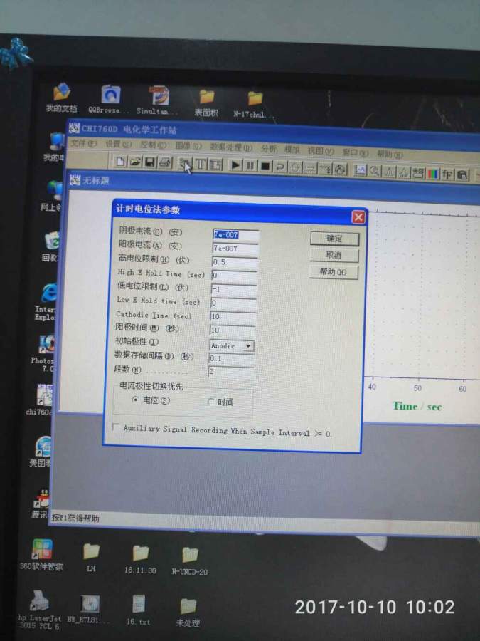 求助大佬,我用计时电位法做充放电测试,辰华电化学工作站,0.1M的硫酸溶液,对电极为铂丝,参比电极为Ag /AgCl电极,工作电极为自制金刚石薄膜电极,设置的参数如图二,。