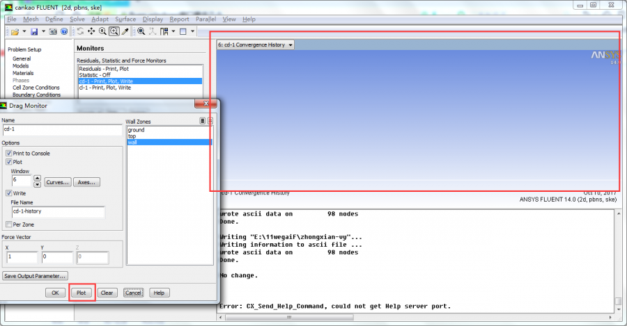 fluent监控阻力页面点击plot,阻力系数曲线显示不了,为什么啊? 已有1人参与