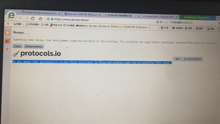 10月给的小修,是不是从现在开始实验都要上传到protocols.io系统上?关键是在中国打不开?怎么办?