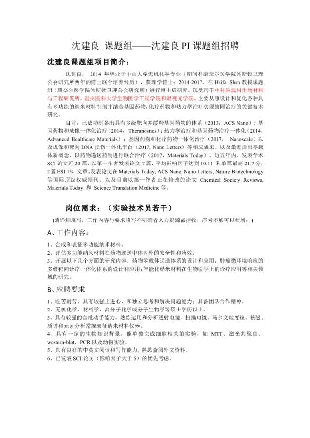 中科院深圳先进院成会明院士\唐永炳国家杰青团队招聘