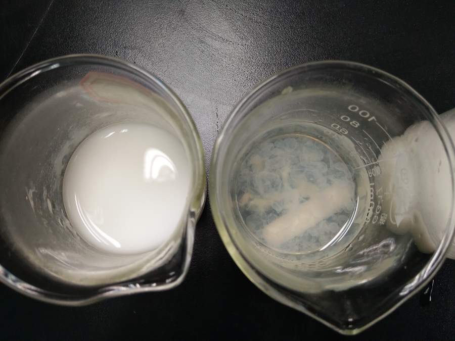 请教一下大家:我配了两种溶液,壳聚糖用2%乙酸溶解的,羧甲基纤维素钠用水溶解,都是2%,溶解完全后,将CMCph调至3,然后在搅拌状态下缓缓加入壳聚糖溶液,这时候如果搅拌速度慢的话,会形成囊泡状,里边包着水,如果搅拌速度快的话,也有可能是因为ph原因,形成了乳浊液状的东西,我看文献上是可以溶解的,请问要怎么实现他俩共混后形成均匀的液体。 IMG_20171010_200020.jpg |