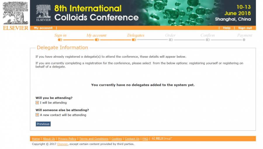 老板让我参加elsevier办的8th international colloids conference会议,小木虫上有人参加吗? 我在使用elsevier的会议登记系统添加参会人的时候遇到了一点问题,有没有人知道怎么解决呀?如下图,说是没有这样的产品,请联系管理员。 ]YA[O8PTH7K{`TBG@BXDPTR.png JMV3A%L~DE_UFT%WBLA%6E5.png |