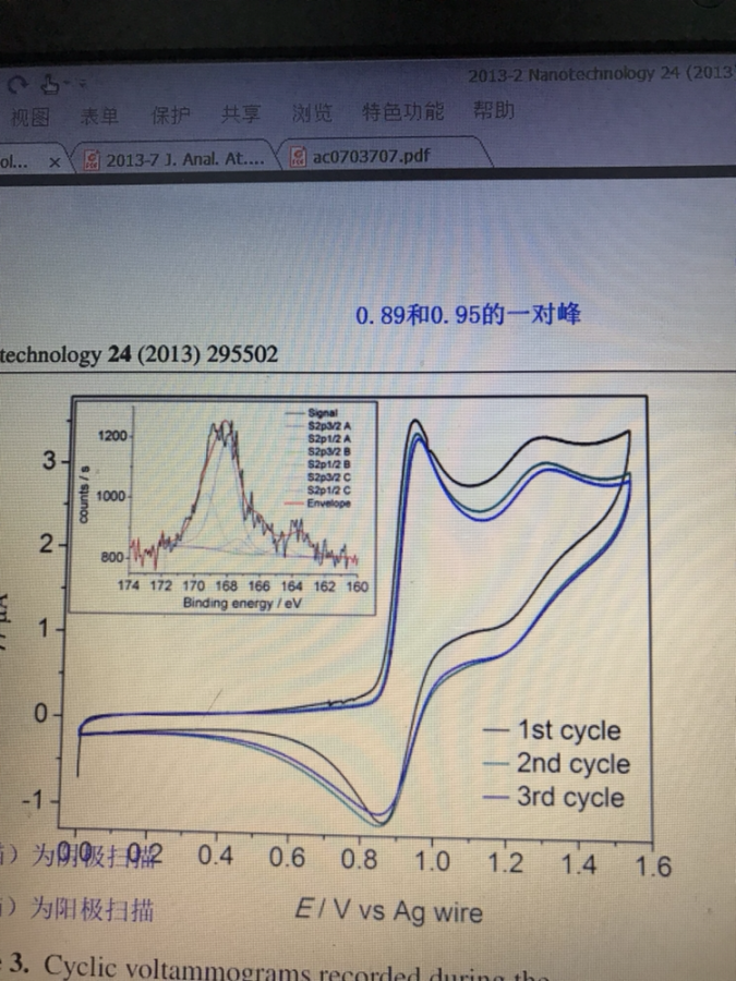 此图展示的是半胱氨酸修饰的玻璃碳电极的图,文献中解释的,从负到正扫的时候是两个阳极峰,从正到负扫是一个阳极峰,一个还原峰,为什么从正到负还会出现阳极峰,不是应该两个还原峰么? 发自小木虫IOS客户端 |