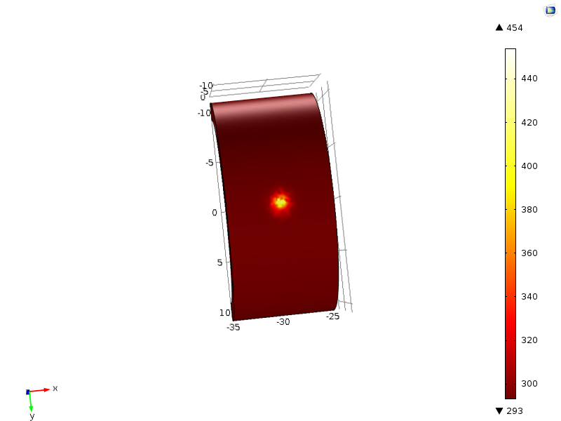 模拟的是激光辐射到铝壳样品中激发超声的问题。但是,激光打在样品上可以明显看到温度上升,如图所示,可以看到激发处温度上升到454K,但是当我取激发点处,想要绘制温度曲线,就出现下面情况,几乎没有温升,甚至温度还下降了!! 真心求大神告知什么问题。思考了很长很长时间,还是不知道问题所在。 所有的金币只有8个,愿意倾其所有,希望有个大神愿意帮忙解答一下,先在此谢过。 2.png 1.png |