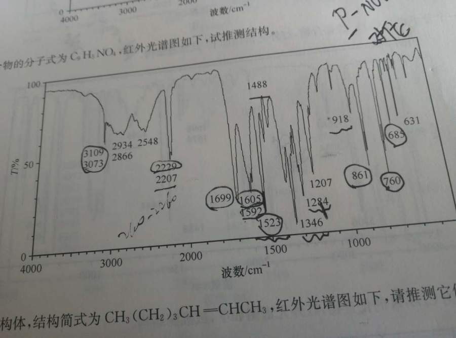 这个是化合物为C9H5NO4的红外光谱图,推测其结构,并且说明原因 _20171014105842.jpg@wyy080214 |
