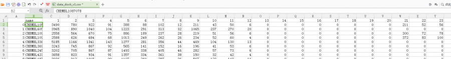 这是我从一篇文献下载下来的数据。他应该是分子构象的数据“Ligand 3D conformations were generated with docking programs”,构象转化成了CSV格式数据。每一行的分子数据,这些数字是什么意思呢! datashuju.png |