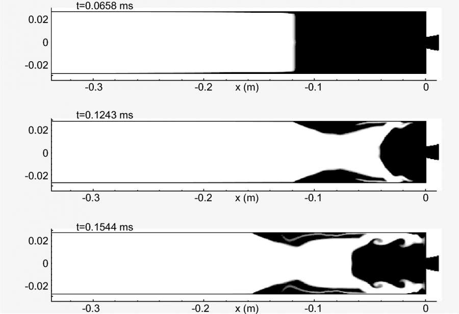 文章题目:Theories and technologies for duplicating hypersonic flight conditions for ground testing 文章链接(免费获取,欢迎点击下载!):https://doi.org/10.1093/nsr/nwx007 高超声速飞行气体动力学与亚声速和超声速气体动力学截然不同。对用于高超声速飞行的吸气式发动机(冲压发动机)进行地面测试非常困难,而飞行测试则非常昂贵。由力学所姜宗林研究员等人撰写的这篇 NSR Perspective 文章,对高超声速飞行地面测试的理论和技术进行了详细的介绍和探讨。 文章节选: To carry out a reliable ground test at hypersonic Mach numbers, there are four key parameters required for hypersonic test facilities. The first parameter is the test gas and it is the key issue to ensure correct thermochemistry in test flows. The second is the total flow pressure and temperature with which the altitude pressure and temperature, and the flight speed can be reproduced with the proper nozzle expansion. Consequently, the chemical-reaction process can be simulated correctly, as well as the aerodynamic forces and momentum. The third is the nozzle size. In other words, the nozzle exit must be big enough to accommodate a large vehicle model so that the chemical-reaction time scale can be much smaller than that of the test gas flowing past the model. The last one is the test duration. For air-breathing hypersonic vehicles, the airframe is also part of the scramjet engine; therefore, the test duration has to be long enough to sustain stable supersonic combustion in the engine. Qian estimated the requirement and suggested that a 100-ms test time is sufficient for supersonic combustion research. Actually, there is a balance point for creating the test duration as long as the facility is not seriously damaged because of extremely high total temperature that causes a severe thermal barrier on the hypersonic wind tunnel. It is even more challenging that one has to simulate all these four parameters simultaneously in a single test facility, and it is the reason why there is still no single ground-based facility capable of duplicating the hypersonic flight environment after the 50 years of development of advanced hypersonic test facilities. Over recent decades, different facilities have been developed to address various aspects of the design problems associated with hypersonic flight. This idea works and a lot of experimental data are generated, but uncertainness and low accuracy are imposed on these wind-tunnel test data, resulting in slow development of hypersonic vehicles. 【文章图】驱动段和试验段末端气体分布的时间序列(白色:驱动气体;黑色:试验气体) |
