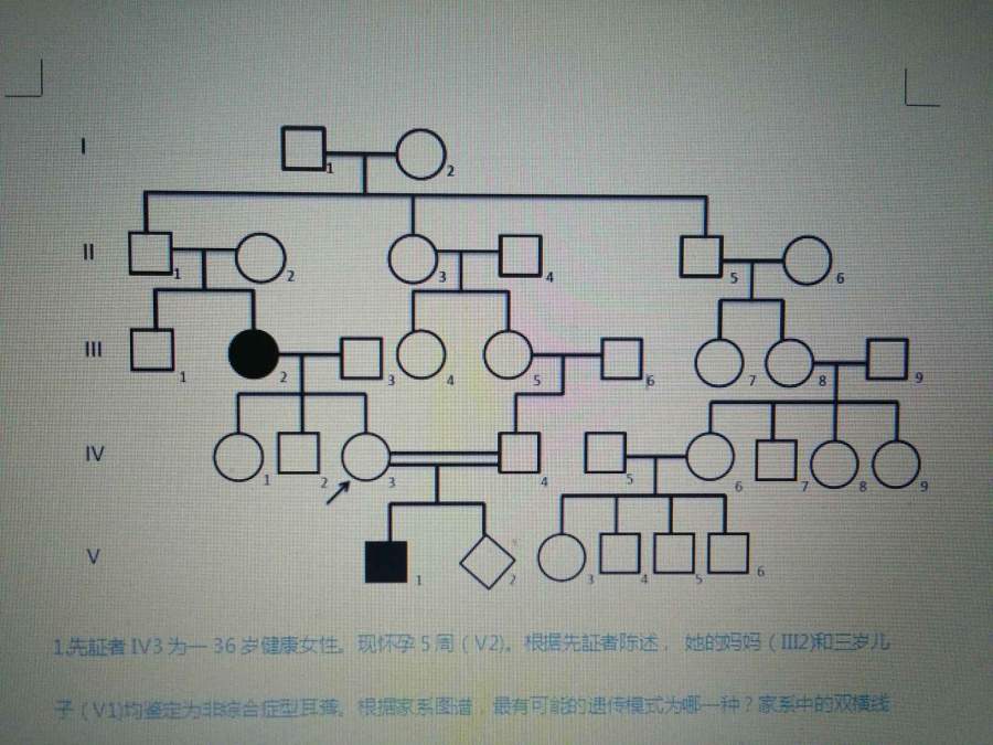 1.先証者IV3为一36岁健康女性。现怀孕5周(V2)。根据先証者陈述, 她的妈妈(III2)和三岁儿子(V1)均鉴定为非综合症型耳聋。根据家系图谱,最有可能的遗传模式为哪一种?家系中的双横线表示什么? 2.应先証者要求,相应实验室对IV3,即先証者本人和V1进行了GJB2一代测序。测序结果显示IV3不携带任何突变。而V1有一纯合的c.257C>G (p.T86R)突变。这一突变在亚裔人群中相对非常少见。是哪一种机制导致了V1的纯合突变?你的下一步建议是?? 3.随后在遗传咨询师的建议下,我们进一步分析了先証者的丈夫(IV4)和先証者的母亲(III2)的基因型。IV4携带杂合状态的同一错义突变,而她的母亲III2的基因型也为纯合的p.T86R突变。以上信息有助于你重新解读V1的基因型吗?? 发自小木虫Android客户端 |
