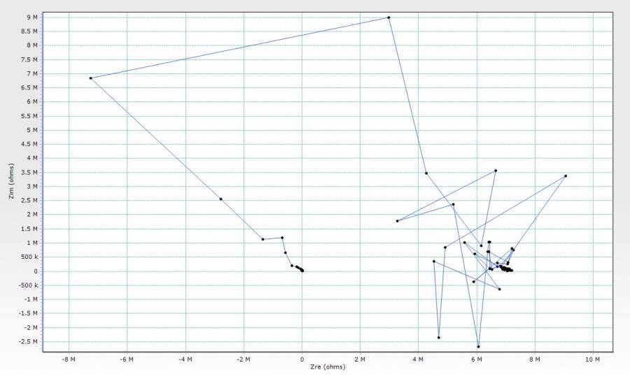 我在单晶两端用导电Pt浆连接Pt线在1000C炉中烧2h。 然后做交流阻抗测试,范围为10的6次方到-2次方。 气氛时氧气,但是测试过程中发现,有时会测出阻抗谱,大部分时候中频区域都是乱点。 请见附图。请问虫友这是什么原因造成的?感激不尽! 1.JPG 2.JPG |