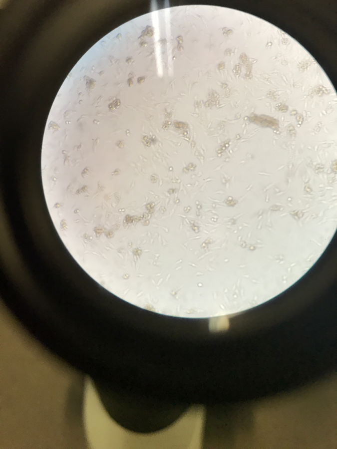 复苏后长的很好,第一次传代,长的也很好:第二次准备传代前,背景略黄,有部分细胞上连着漂浮着的细胞团,我传代了,结果均有这种团块状细胞团,是污染?还是死细胞???求助!!!pbs洗后干净了,但隔天还会出现…… 发自小木虫IOS客户端 |