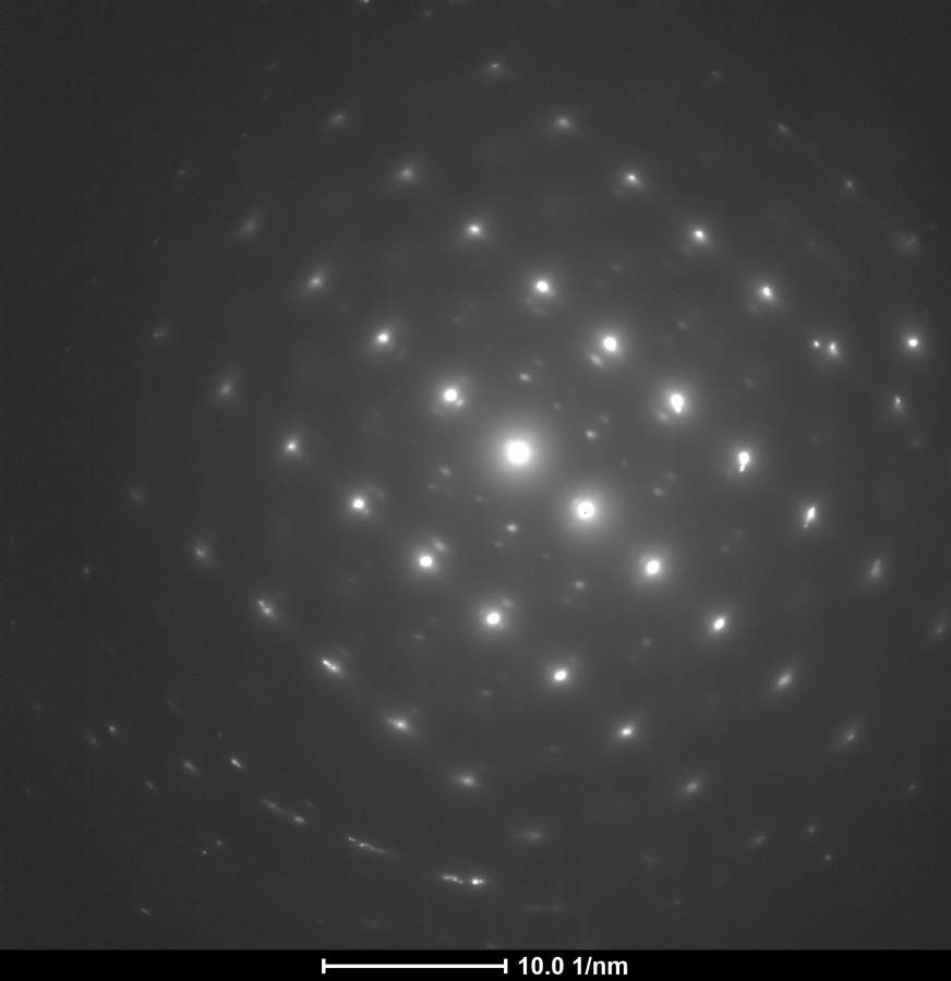 请大神帮我看看这个SAED的斑点是什么东东,该如何标定。