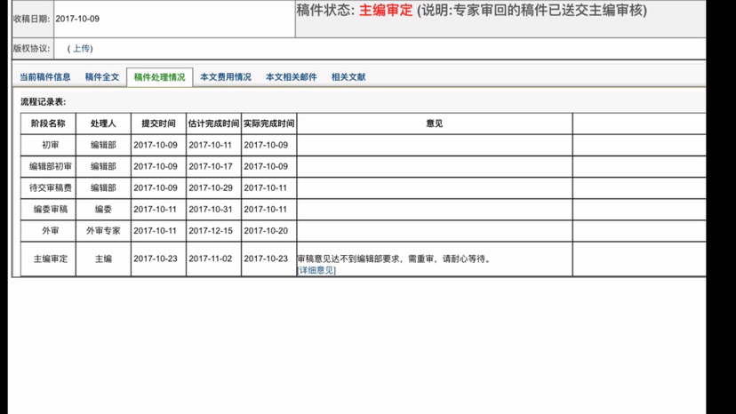 前几天刚投的计算机工程与应用,本来看着外审九天九结束了,看了小木虫上相关的评论,按道理第二天就回主编审然后给出是退稿还是退修的结果,可没想到是如图的结果,忘大神解答到底出了什么情况,我是不是悬了,第一篇论文,自己原本很是期待的,谢谢你们了! 发自小木虫IOS客户端 |