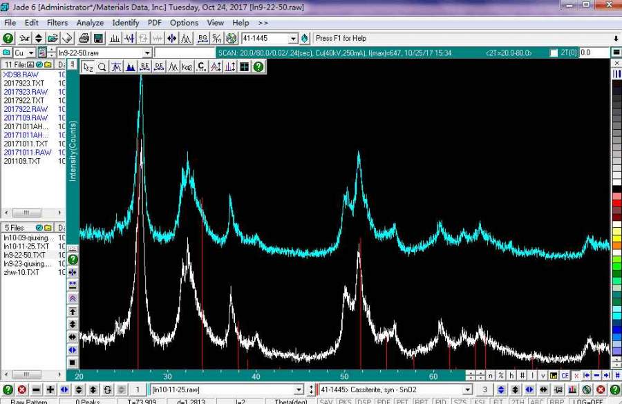 按照文献上合成了二氧化锡材料,测出来xrd跟文献上的不太一样,而且跟标准的峰对比也有出入,不知道是什么原因引起的,我合成的难道不是二氧化锡吗?附图 发自小木虫Android客户端 |