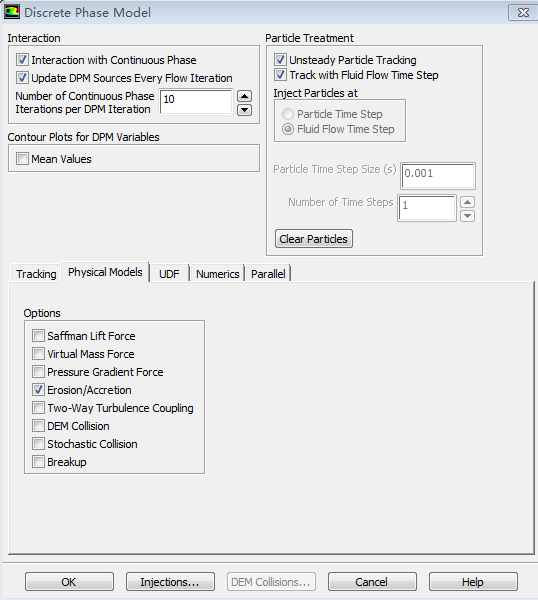 fluent冲蚀模拟看不出来壁面的冲蚀效果,左边为压力进口5MPa,右边为压力出口,DPM模型设置如下图所示,求大神指教,请问问题出在哪。???? filter01(before compute)-1-00225.jpg 01.PNG 02.PNG |