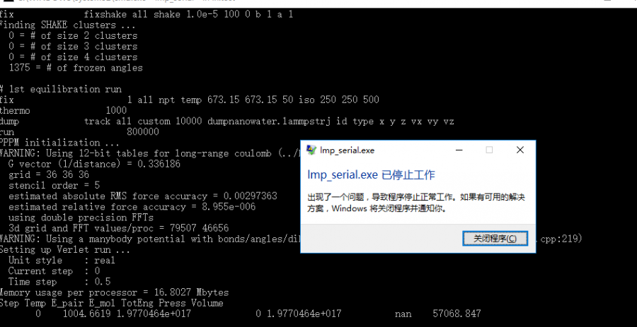 lammps计算出现问题,突然终止运算,但是也没提示error 已有1人参与