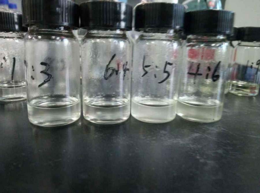 油相:棕榈酸异丙酯,乳化剂:司盘80,助乳化剂:丙二醇。预实验室表明能形成w/o纳米乳,结果做伪三元相图按油:混合乳化剂=9:1,8:2……1:9做时,7:3的油相和混合乳化剂在没滴加水的情况下不能形成透明混合溶液,也换了油和助乳化剂,依然没效果,求各位不吝赐教。 发自小木虫Android客户端 |