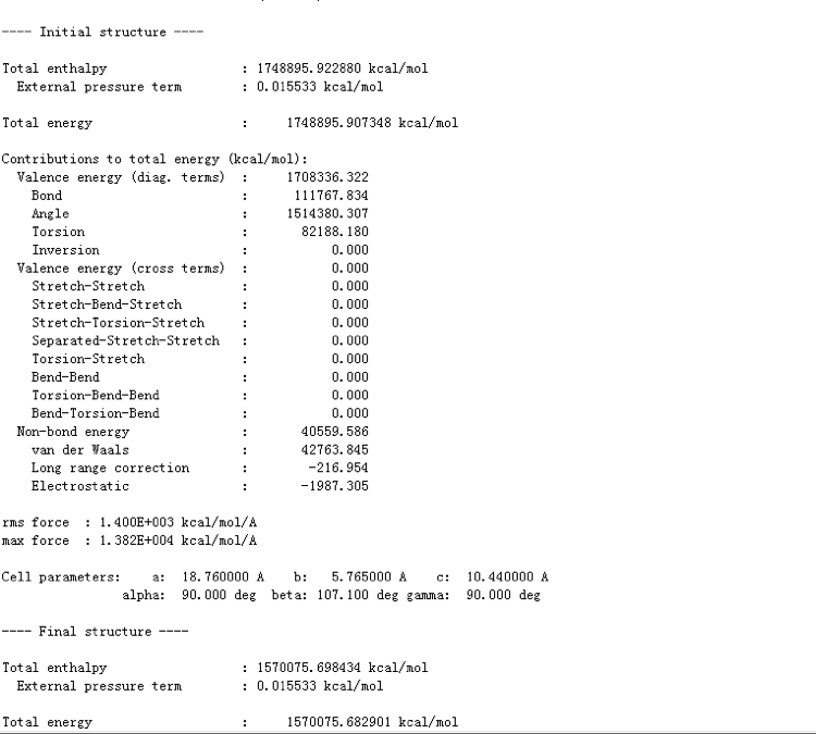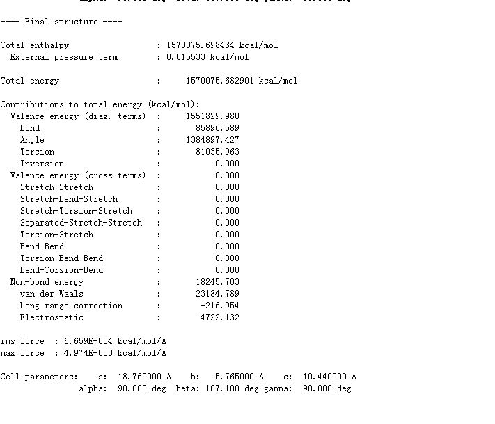 我按着上边那个链接的过程做了一下,rebuild crystal将晶胞参数改了过来,然后把多余的N原子给删了,集合优化后边长abc和贝塔角都没变,但是文献上变化了一点,是优化的过程不对么?我刚学ms不久,还多请教