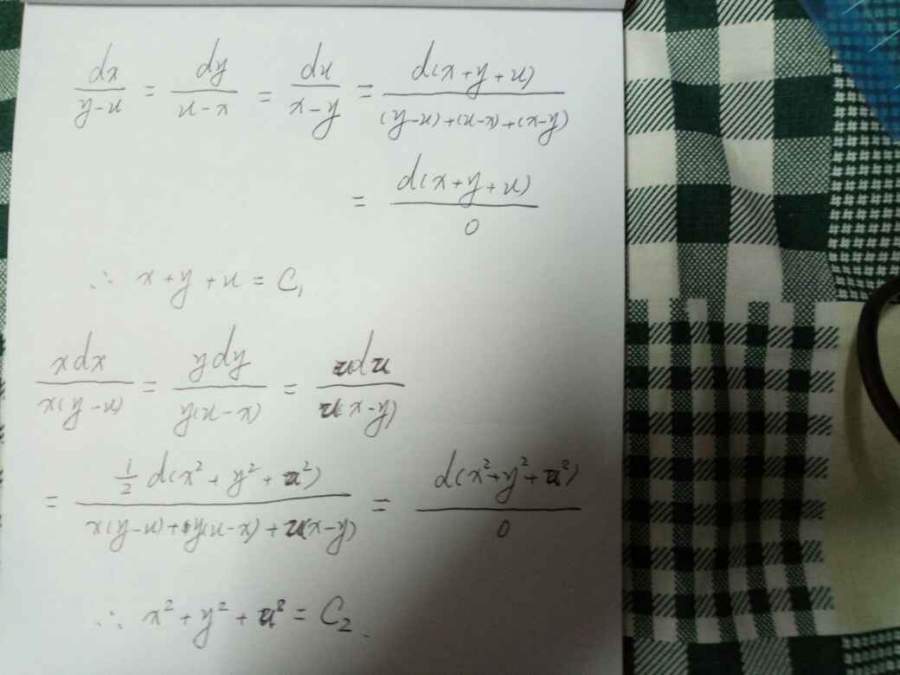 请问这两个初积分是怎么算出来的,我把常微分方程组的基解矩阵求出来了,但是还是没有写出书上这两个初积分,求大神指点 发自小木虫IOS客户端 |