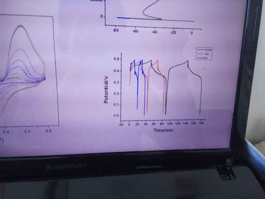Ni、Co的化合物通常有大几百、好的有几千F/g,如果那个充放电是1 A的电流那容量估算大概是40000 F/g,太高了不太可能,如果是按1 A/g算,那就只有40 F/g。
