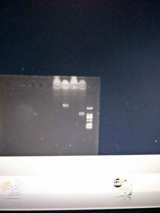 酶切之前先确保自己的质粒抽出来了没有,可以跑胶看一下,或者用nanodrop测一下,一般情况下,胶孔里有亮亮的条带是因为蛋白质木有去干净 发自小木虫Android客户端 |