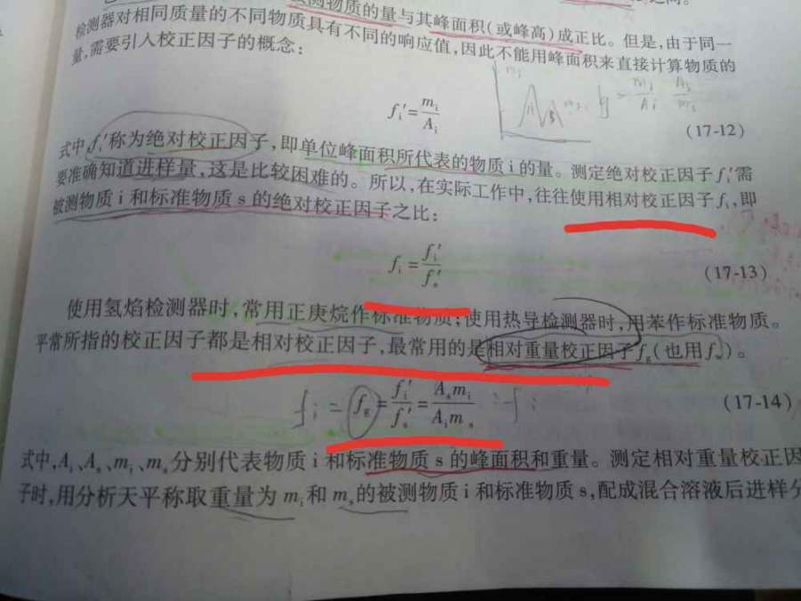 内标法我是这么记得。 首先是内标物有自己的峰面积和质量(浓度也行),待测物质有自己的峰面积和质量(浓度也行)。 内标物的校正因子是固定的,待测物的校正因子是固定的,那么两个物质的校正因子比值是固定的,这个没有问题吧?那接着说。 当你算完相对校正因子后,在实际测量时,你知道四个量:分别是内标物的峰面积和质量,待测物质的峰面积,以及相对校正因子。 根据相对校正因子的公式,你就可以算出待测物质的质量(或者浓度)。 内标法的好处是能避免用外标法带来的进样量误差。拿个我实际工作的例子,就是如果测量0.1%这种级别的浓度物质,用外标法手动进样出图后峰面积就很大,实际结果在0.09%~0.11%之间。内标法会避免进样量带来的误差,因为如果进样量变化,内标物的出峰面积也会降低。 |