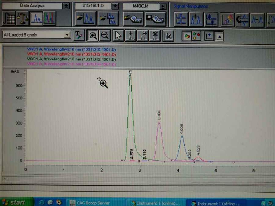目前是用流动相中的水相0.01mol/l磷酸氢二氨溶解分析纯的几种酸,包括草酸,柠檬酸,同戊二酸,分别跑hplc看出峰,然后再跑混样。混样跑出来的和单独跑分离效果不一致……分离不出来草酸。条件是甲醇1,水相99,也试过3:97,10:90/20:80/30:70等,求指导。安捷伦1100,安捷伦XDB反向C18 发自小木虫Android客户端 |