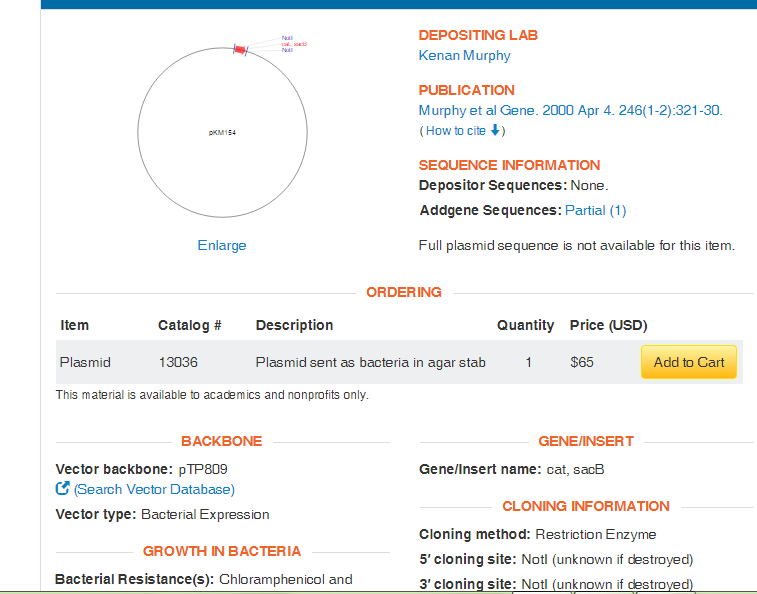 请看网页http://www.addgene.org/13036/,原始文献PCR-mediated gene replacement in Escherichia coli. Murphy KC, Campellone KG, Poteete AR. Gene. 2000 Apr 4. 246(1-2):321-30. 10.1016/S0378-1119(00)00071-8 PubMed 10767554 |
