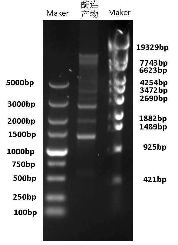 本人第一次做质粒与外源DNA连接,你们连接后会出现这种连得乱七八糟的情况吗?