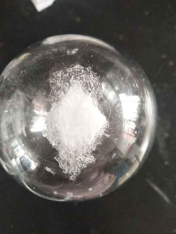 过PCM=2:1:1的凝胶,下来的流分,浓缩之前是溶解的,浓缩后出现结晶,但是溶不了,甲醇,氯仿,丙酮,石油醚,吡啶,四氢呋喃,二甲基亚砜都试过不溶。求大神指点。(中间的是棉花,洗结晶的时候加进去的) 发自小木虫Android客户端 |