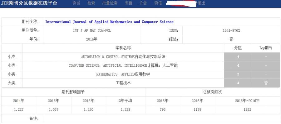 International Journal of Applied Mathematics and Computer Science 最新大类小类分区是几区;