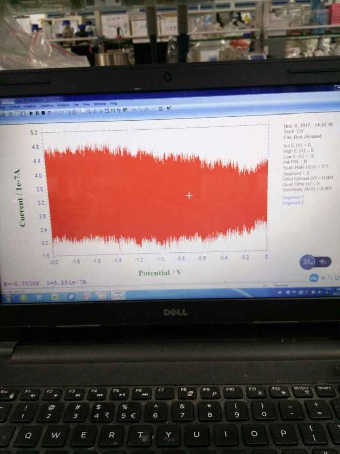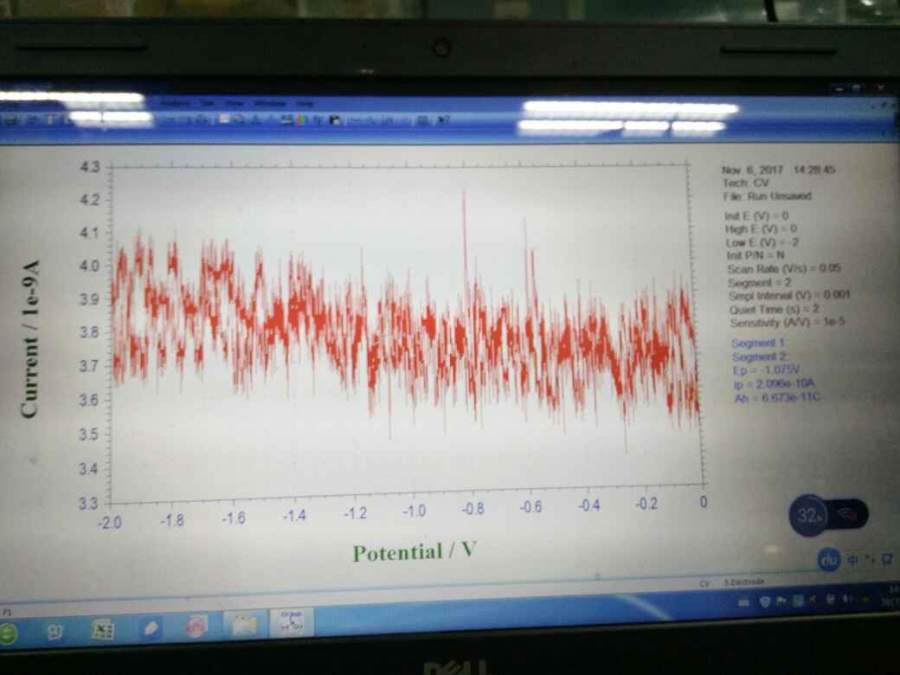 我最近研一刚接触课题,我们实验组也没有做这个方向的,所以有些简单的问题想问大家。 我最近两天做了几次电化学还原CO2的实验,用H型电解槽,三电极体系,Cu箔做工作电极,Cu箔用丙酮乙醇盐酸进去超声预处理,0.1M KHCO3做电解液,通30minCO2让电解液饱和。之后用电化学工作站去测CV曲线,但是发现根本扫不出来曲线,背景影响值特别大,想问大家是什么原因? 发自小木虫Android客户端 |