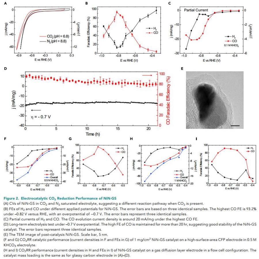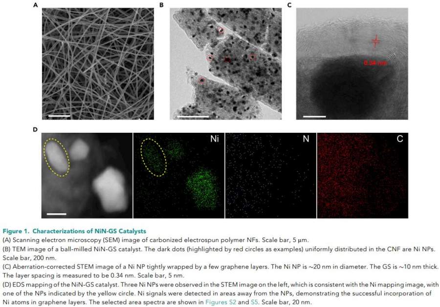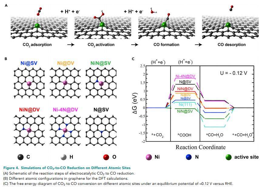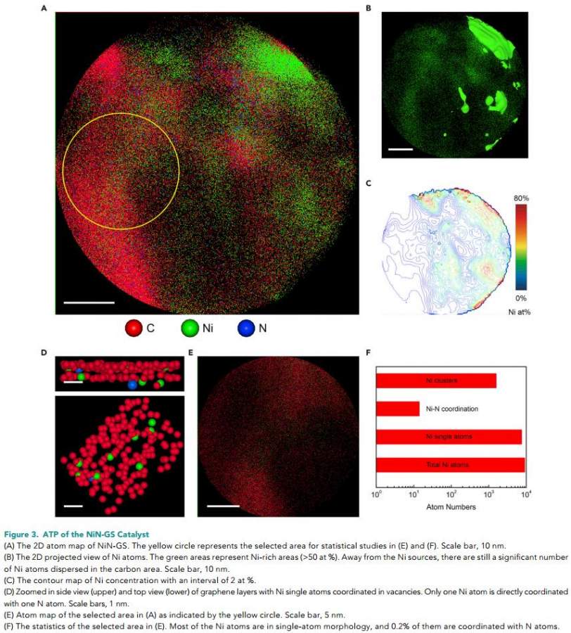 从Free Energy Diagram (Figure 4C)上来说,Ni-N4 位点虽然能显著降低对 CO 的吸附强度,但催化 CO2 到 *COOH 的活化能垒最高(>1.5 eV),这是主要劣势;而实验中我们在 -0.36 V vs. RHE的电位下已经观测到 CO 的生成。 另外,我们原子分辨率下的 3D APT 表征结果证明(Figure 3),在 graphene layer 里面所固定的 Ni 单原子,其周边是以Carbon的配位为主:Ni-N pair 的统计结果 < 0.2% (statistics for ~10,000 Ni atoms)。 在后续的EES工作里(10.1039/C7EE03245E),利用EXAFS还详细比较了 Ni-Phthalocyanine (with Ni-N4 moieties) 和 Ni-N-Graphene 的配位结构差异,可以参考其中的 Ni K-edge 和 N K-edge 的谱图。 |