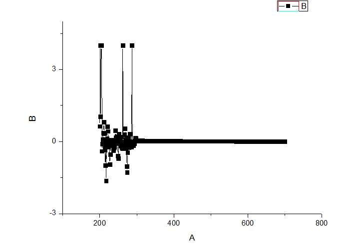 求各位虫友帮我看看这个紫外吸收光谱,总感觉数据有问题吧?跟我见过的图好像不太一样 谁会分析哇。。。。。。