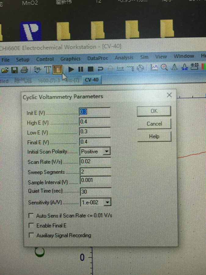 求大神啊~~~ 最近做不同扫速的CV,用660e的工作站得到的曲线是这个样子要哭了 ![]() 求助大神们是什么原因啊? 我是个改sample interval 如果是0.02扫速的要改成0.002interval才行,同理如果是0.1扫速的要改成0.01interval,但是这样得到的数据点会好少. 怎么办啊????? IMG_0945.JPG IMG_0935.JPG |