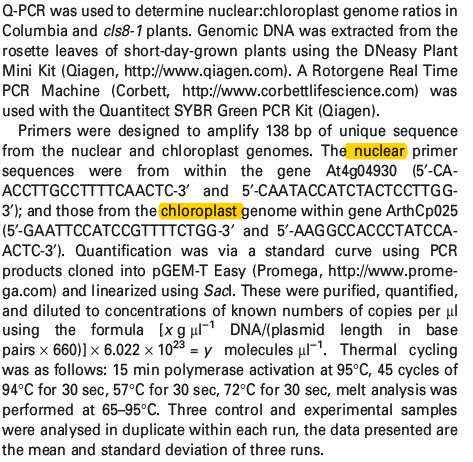 请问各位大神怎么测植物体内细胞核与叶绿体总DNA的比值?看了几篇文献都是用同一个方法,可是菜鸟的我看不明白?请大神们赐教!谢谢!! 发自小木虫IOS客户端 |