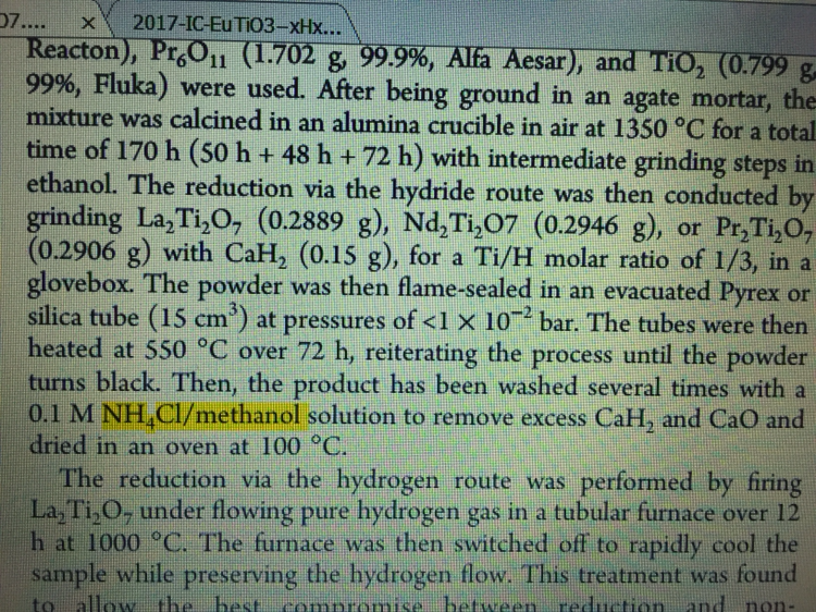 拓扑还原,除CaH2为什么用NH4Cl的甲醇溶液?