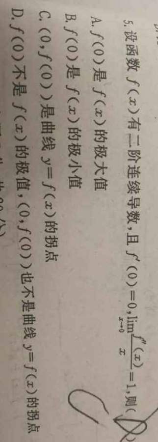 那个极限是正数,说明从零两侧分别趋近的时候二阶导数改变了负号,而一阶导数在此为零,符合拐点的定义