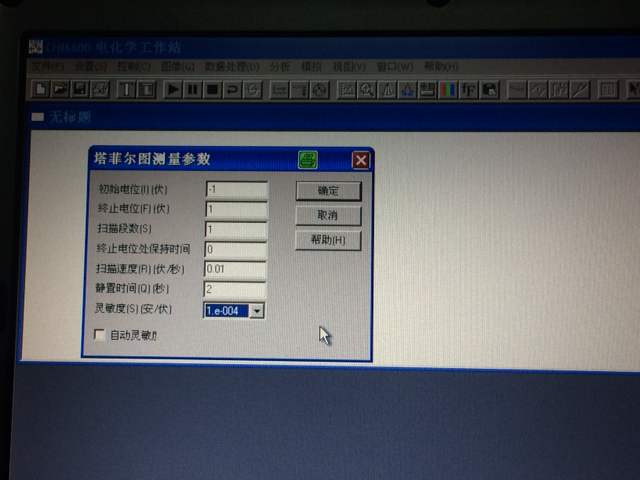 1.测试的参数设置如第一个图。2.得到的图是图二。问题是这个图明显不正常呐。不知如何做出反映正常参数的图?还有就是纵坐标是什么含义呢。 发自小木虫IOS客户端 |