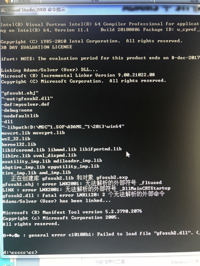 关联Adams,studio和fortran,写完f文件生成dll文件时报错error LNK2001无法解析的外部符号,f程序内有sysary和errmes两个功能子程序。 发自小木虫IOS客户端 |