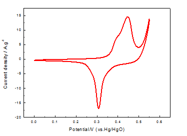 1、如图,测的钴酸镍的氧化还原峰,0.55V处也有一个峰电流,为啥会出现,发现文献里也有这种类似的,也没有解释 2、在同一扫速下测CV曲线,发现设置的循环次数越多,最后一圈曲线包围的面积就会越来越大,是因为我的粘结剂加多了吗 2mv/s.PNG |