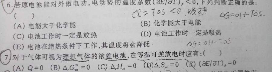 如楼上,能量转化最理想的效果是100%转化,但是基本上是达不到的。故第6题化学能大于电能。第7题可以肯定的是B是对的,但是如果让我选,我会全选,请问第七题答案是什么? 发自小木虫Android客户端 |